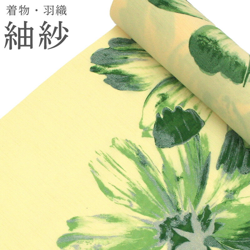 夏物 紗 洗える着物・羽織 道中着 お仕立て代込み 単衣着物 洗える夏着物 小紋 反物 紗紬 イエローにグリーンマーガレット【TT】