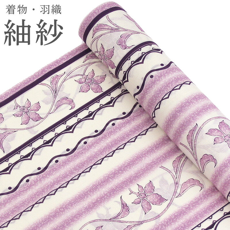 夏物 紗 洗える着物・羽織 道中着 お仕立て代込み 単衣着物 洗える夏着物 小紋 反物 紗 パープルにぼかし鱗丸文