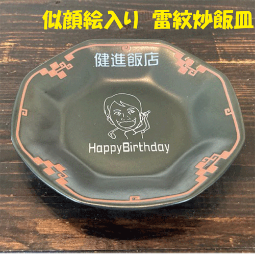 似顔絵入り雷紋柄 炒飯皿に名前を彫刻【記念日】【似顔絵 誕生日】【似顔絵 記念品】【退職祝】などの贈り物に【記念品 名入り】【似顔絵 父の日】【ラーメン丼 名入り】【似顔絵 還暦プレゼント】【ラーメン 誕生日】