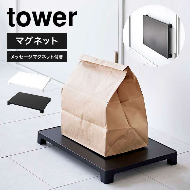宅配 荷物 トレー 置き場 山崎実業 マグネット置き配トレー マンション フードデリバリー 受け取りトレー tower タワー 一戸建て 磁石 メッセージマグネット付き シンプル スタイリッシュ 省スペース コンパクト 荷物 台 感染予防 ホワイト ブラック 6115 6116